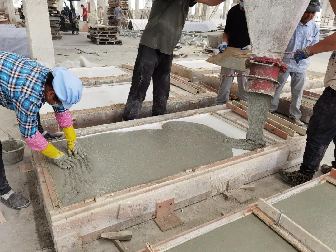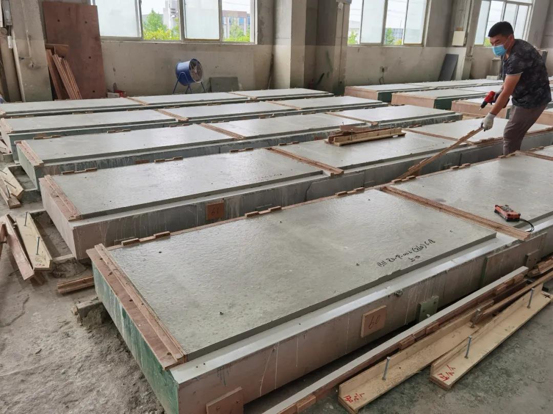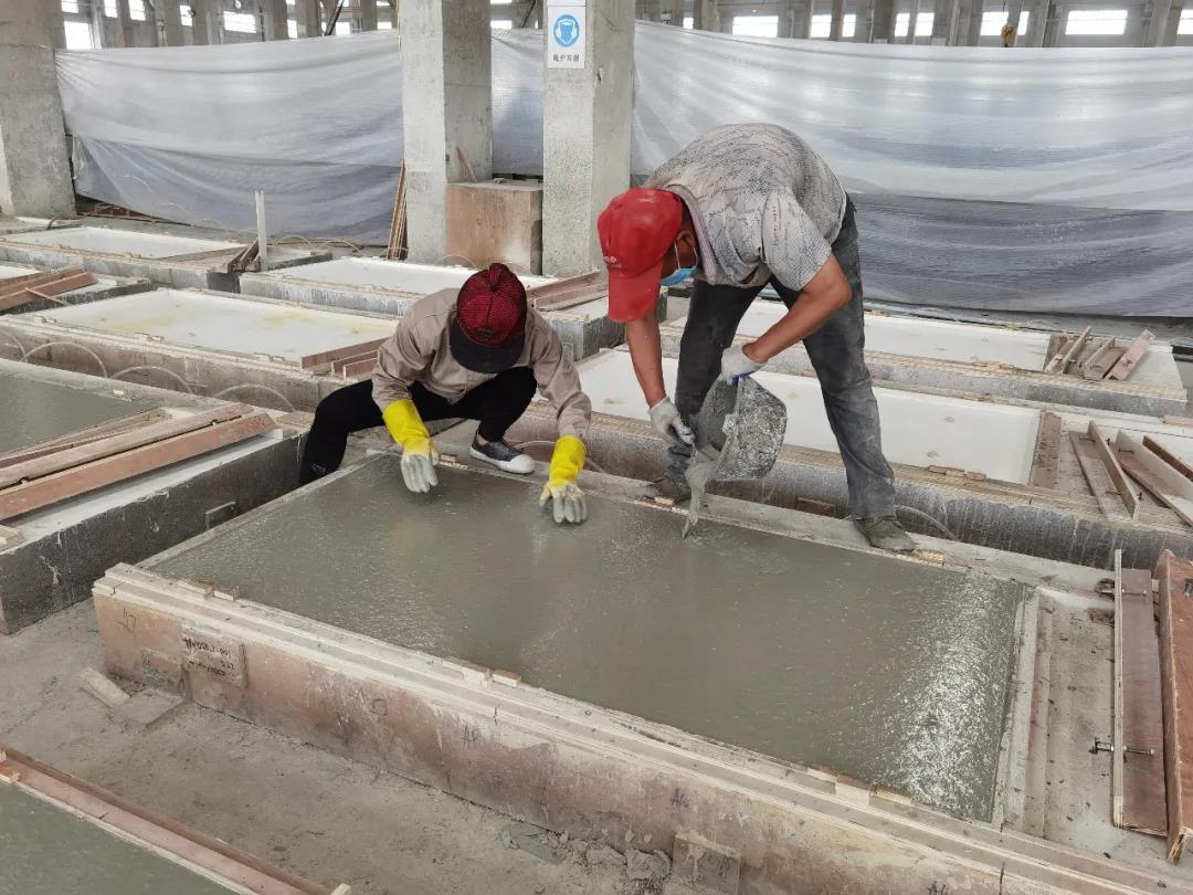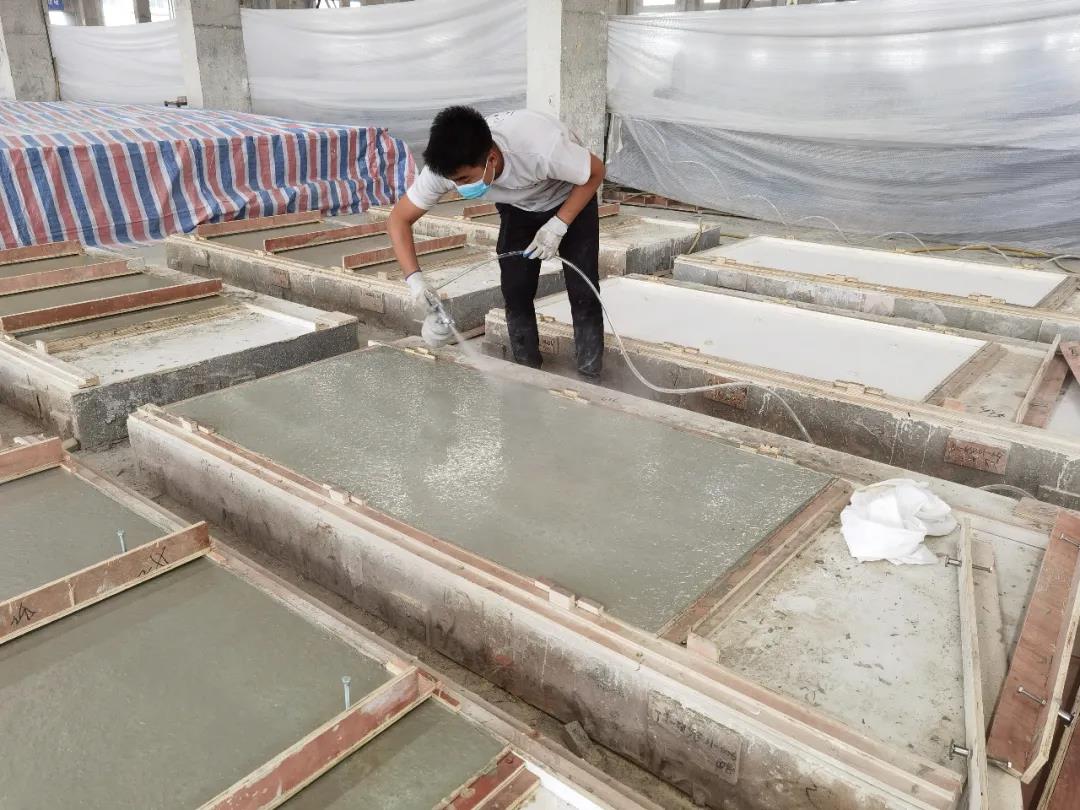 本篇選擇了一款最簡單的平面構件——仿清水混凝土墻構件,來展示生產過程。相片拍攝于2020年6月,倍立達滁州工廠,感謝倍立達新材料系統工程公司的參觀接待和講解。