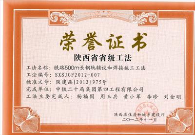 工法獲獎 證書